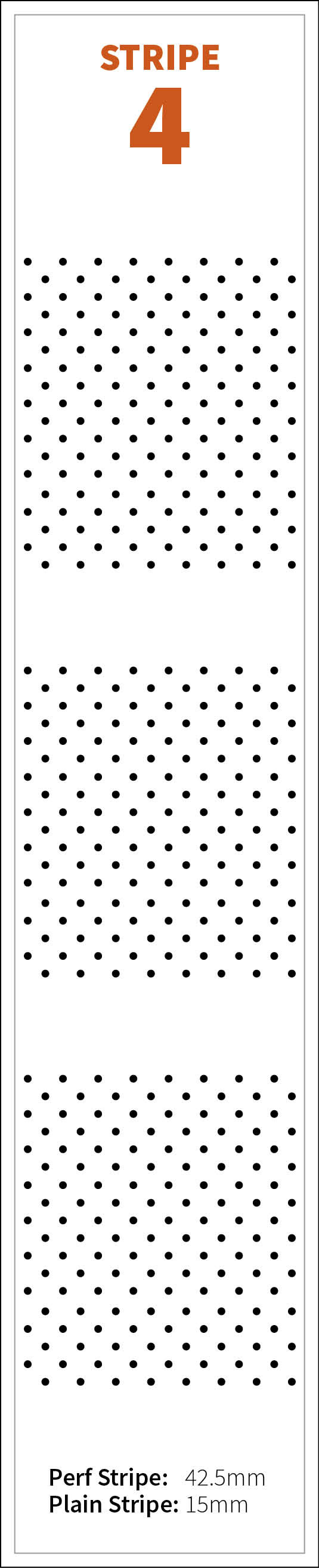 Stripe Dimensions listed are taken from centre to centre of Perforation holes.